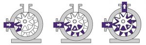 With the rotation of the gears, due to the distance of the teeth from each other, suction is created and the fluid is pushed into the hydraulic gear pump by air pressure.