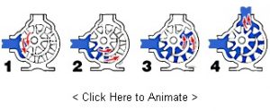 The internal gear pumps use one internal gear and one external gear. These pumps are mostly used for lubrication and power supply at pressures below 1000 psi, but in multi-stage types, access to a pressure range of about 4000 psi is also possible.